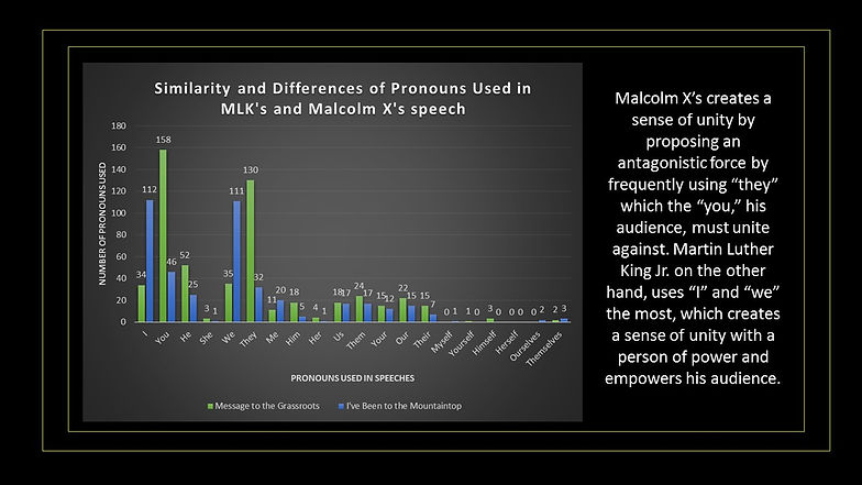 The goal of creating equality in America during the Civil Rights Movement (1954 – 1968) was shared by both Malcolm X and Martin Luther King Jr., however; these individuals had differing ideologies. Malcolm X took a stance of unyielding force in the face of injustice and stressed the need to do what was necessary to be done regardless of the consequences. This was demonstrated in his 1963 speech “Message to the Grassroots”, “There's no such thing as nonviolent revolution...revolution is bloody, revolution is hostile. In this conflict of ideologies Malcolm X’s proposed a call of action against the oppressor, which was a direct disagreement of MLK’s proposition of a non-violent approach to civil revolution. MLK described his concept for a peaceful revolt in his 1963 “I Have a Dream” speech, in which he stated, “We must rise to the majestic heights of meeting physical force with soul force”, the comparison of physical vs. soul was a call for his followers to rise above the temptation of using violence as a means of achieving their goal; instead, to respond with mental and emotional strength. The clash in ideologies between Malcolm X and MLK created two factions within the Civil Rights Movement; those who sided with MLK followed the idea of peaceful revolution, and those who sided with Malcolm X followed the idea of victory-by-any-means-necessary.